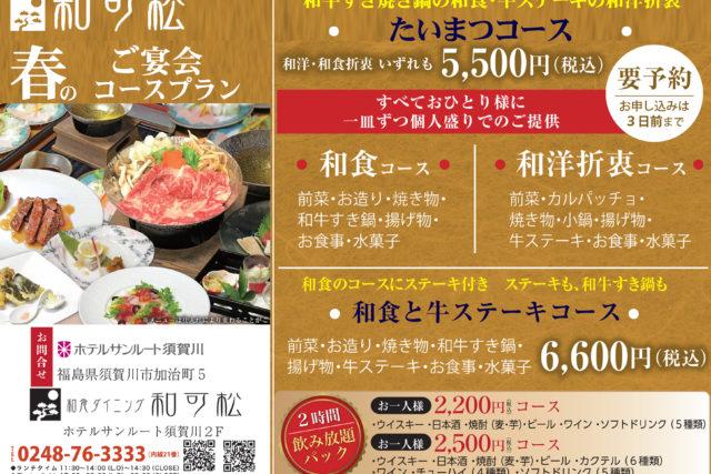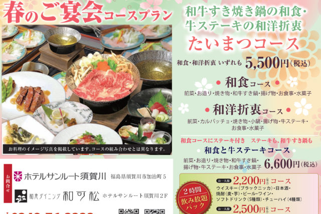 ホテルサンルート須賀川では、会議や懇親会、各種ご宴会など、さまざまなシーンにぴったりな宴会プランをご用意しています。